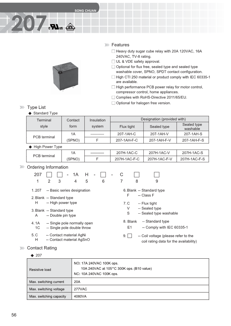 應用領域:20A 120VAC、16A 240VAC、TV-8 大功率方糖形繼電器。 提供UL & VDE 認證。 提供防助焊劑型、密閉型和密閉可清洗型,觸點形式有一組常開型、一組轉換型。 提供CTI 250的材質或符合 IEC 60335-1的產品。 是馬達控制、壓縮機抭制及家電電器應用性能優(yōu)良的PCB繼電器。 符合RoHS 2011/65/EU 指令。 無鹵規(guī)格可供選擇。