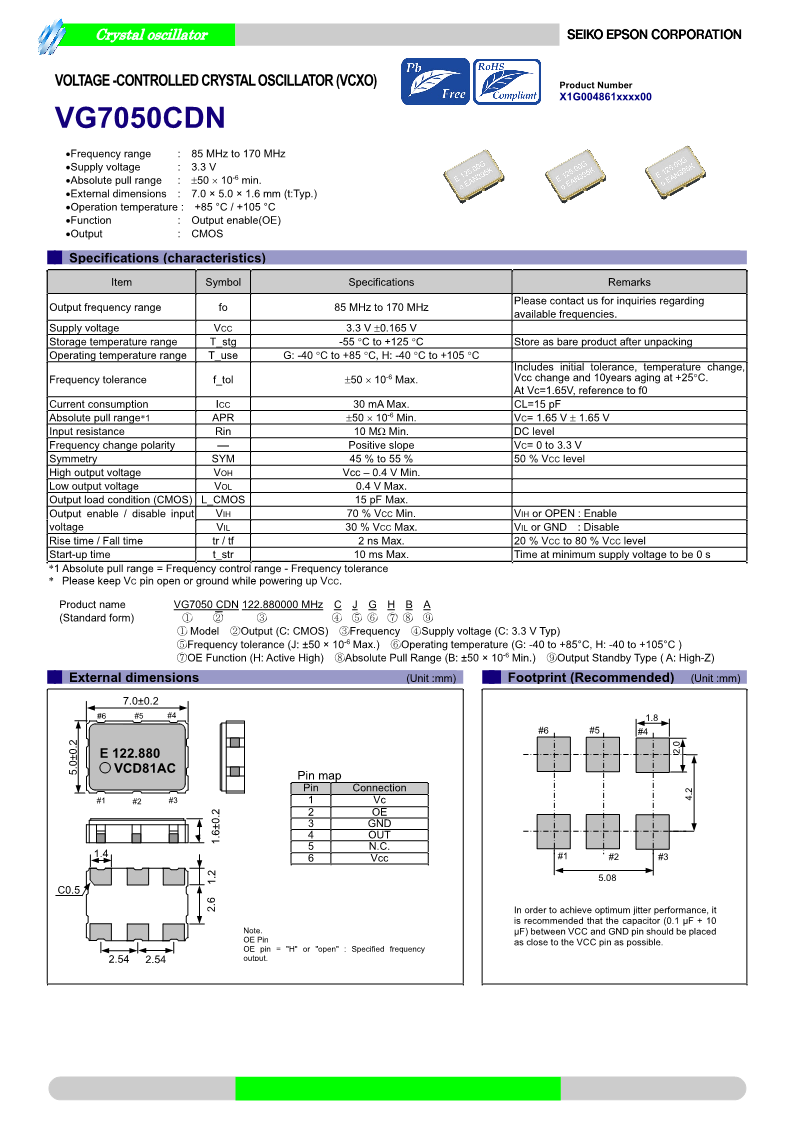 愛普生EPSON 晶振晶體振蕩器(SPXO)VCXO: 電壓控制震蕩器VG7050CDN