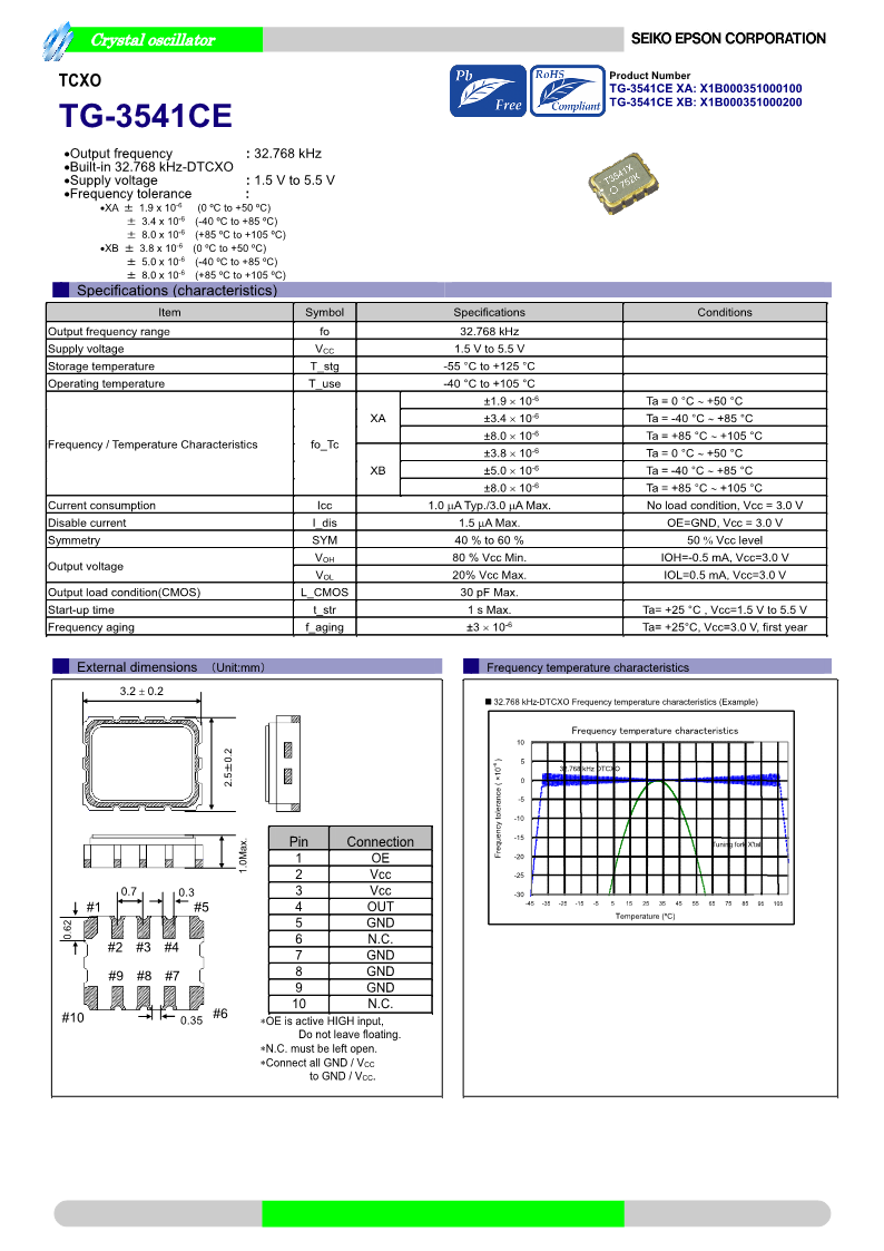 愛普生EPSON 晶振晶體振蕩器(SPXO)晶體振蕩器 (kHz)TG-3541CE