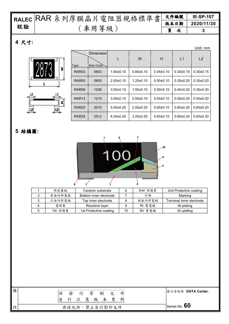 應(yīng)用領(lǐng)域:車用金屬合金電阻,電流檢測的最佳選擇 車用等級芯片電阻,適用于汽車電子,工業(yè)等產(chǎn)品應(yīng)用 符合AEC-Q200規(guī)范 適用于無鉛產(chǎn)品應(yīng)用