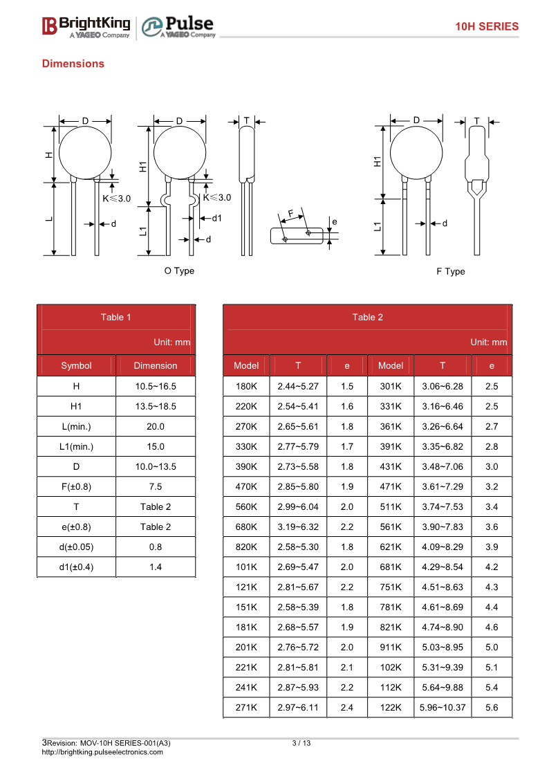 君耀BrightKing壓敏電阻 插件壓敏電阻10H 系列560KH10 560KH10J