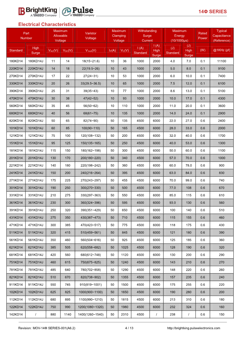 壓敏電阻君耀BrightKing壓敏電阻插件壓敏電阻14D 系列681KD14 681KD14J