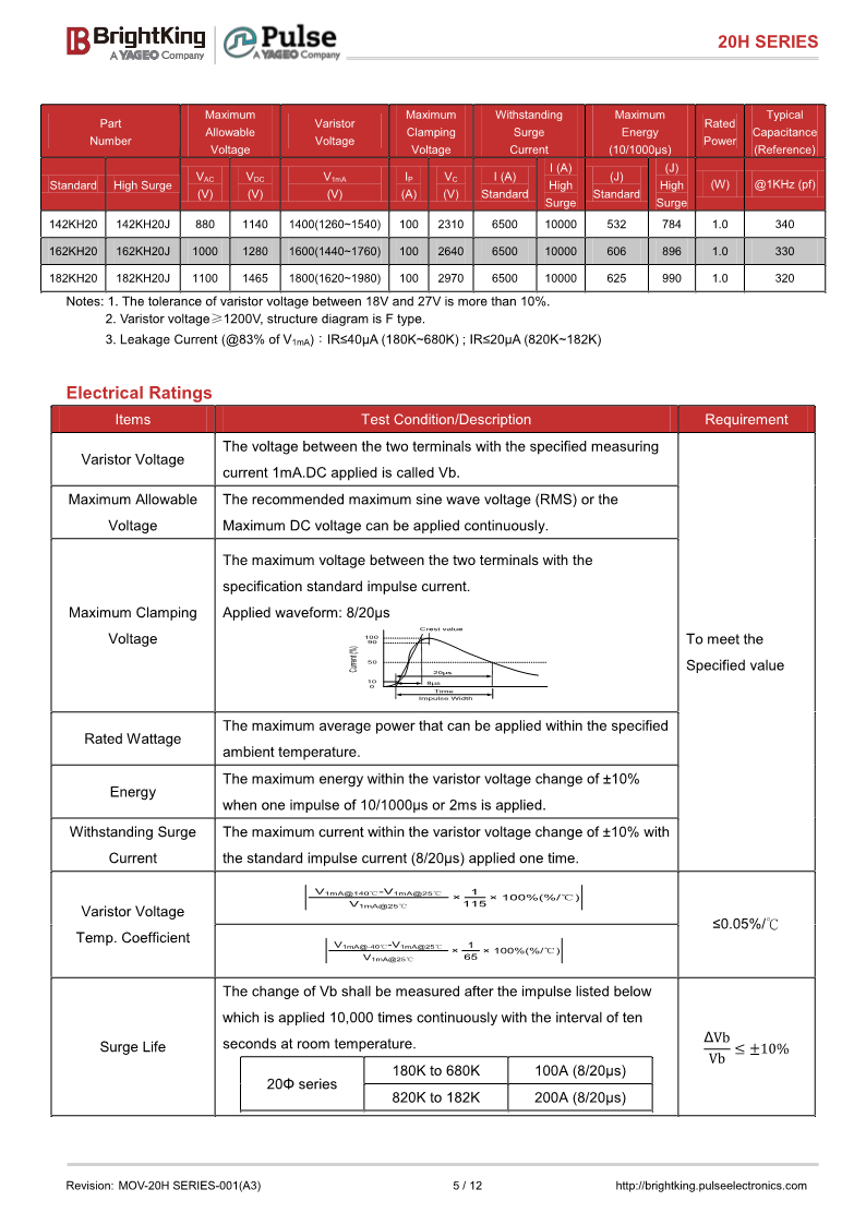 君耀BrightKing壓敏電阻 插件壓敏電阻20H 系列151KH20 151KH20J