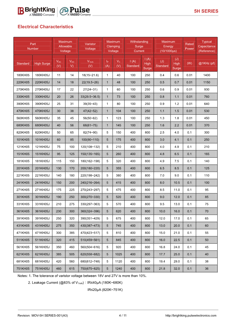 壓敏電阻君耀BrightKing壓敏電阻插件壓敏電阻5H 系列330KH05 330KH05J